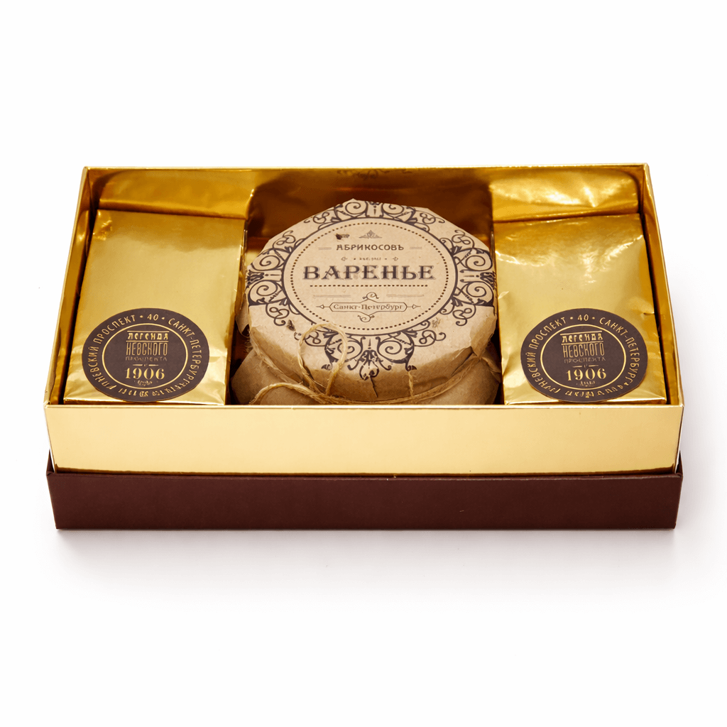 Набор чая и абрикосового варенья — в лучших традициях русского чаепития. Отборный чай и варенье из абрикосов собственного приготовления — для тёплых встреч и особых моментов.